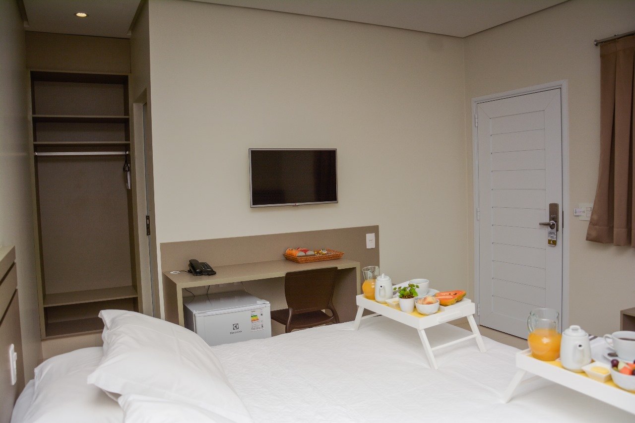 Os quartos da categoria Luxo oferecem todo o conforto necessário para uma estadia agradável. Contam com camas amplas e confortáveis, ar-condicionado, Wi-Fi gratuito, mesa de trabalho e smart TV com canais a cabo. O banheiro é moderno e funcional, projetado para garantir praticidade e bem-estar, seja para uma viagem a lazer ou negócios.