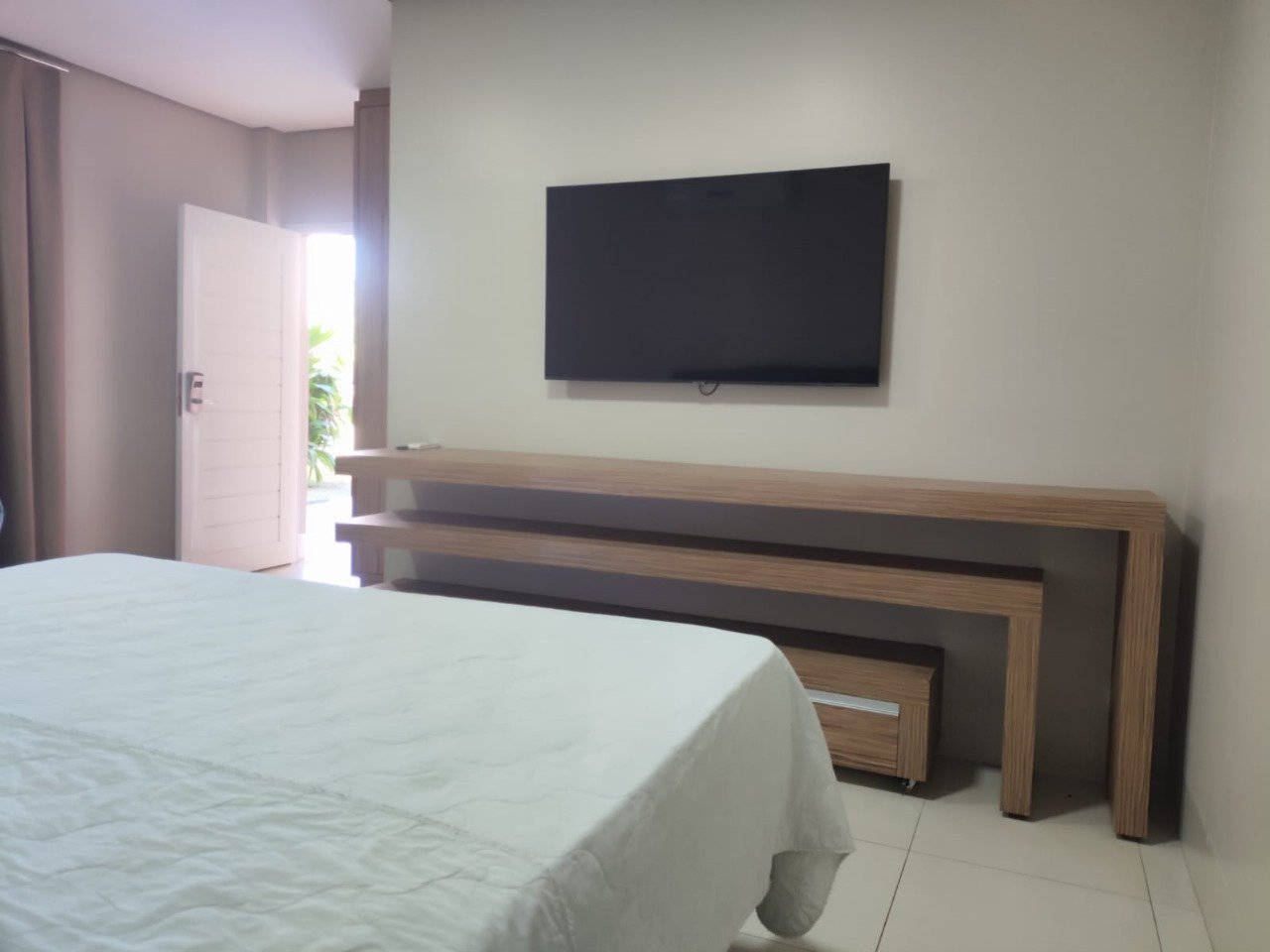 A suíte Master é a opção mais exclusiva do hotel. Com cama king size, espaço interno ampliado e ambiente elegante, o quarto oferece o máximo em conforto e privacidade. Inclui ar-condicionado, smart TV, frigobar, Wi-Fi de alta velocidade e área de descanso. O banheiro é sofisticado, com design diferenciado, pensado para momentos de verdadeiro relaxamento.